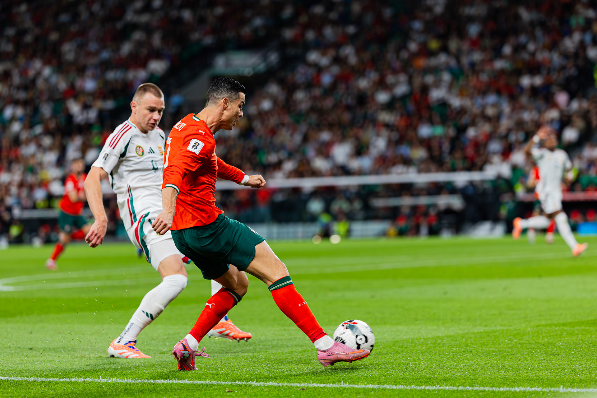 O jogo começou com surpresa: logo aos 8 minutos, a Hungria aproveitou uma desatenção defensiva portuguesa e adiantou-se no marcador. A resposta lusa não tardou — Cristiano Ronaldo igualou aos 22’, com um remate certeiro dentro da área, após assistência de Bernardo Silva.